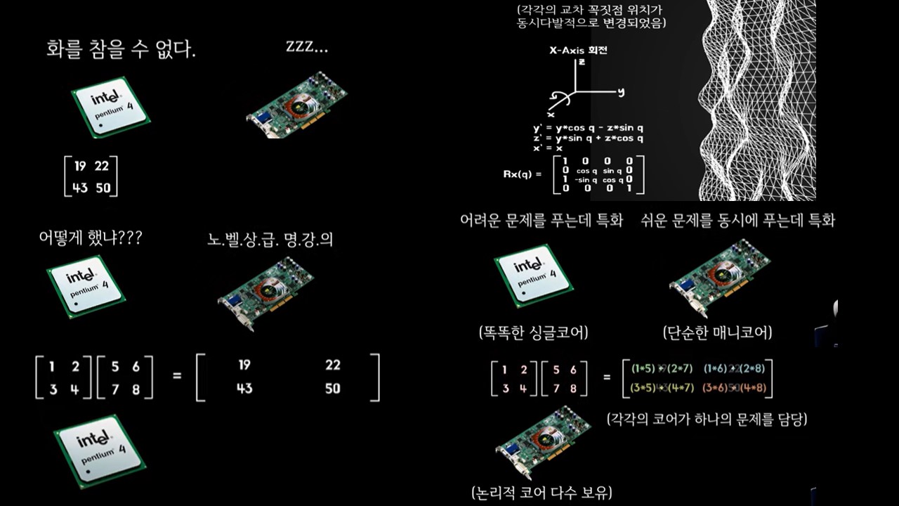 병렬 처리의 개념을 이해하기 위해 Mythbusters의 GPU vs CPU 속도 비교 영상을 참고하시면 좋습니다. 이 영상은 병렬 처리와 순차 처리의 차이를 직관적으로 보여줍니다.