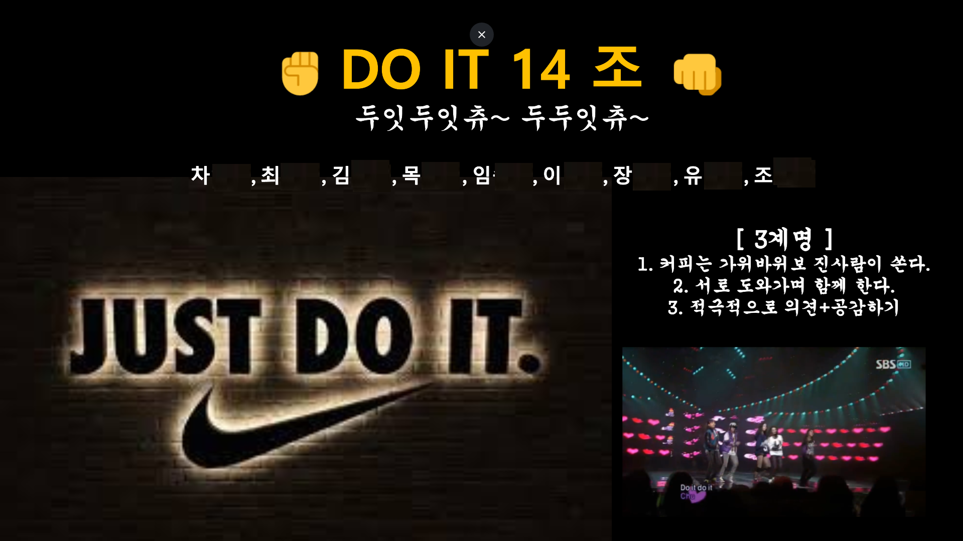 조 이름명은 'DO IT', 한국어론 '그냥 하자'
