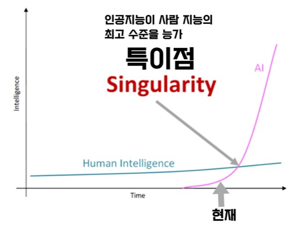 특이점(Singularity,싱귤랠리티) : 인공지능(AI)이 인간의 지능을 넘어서는 기점