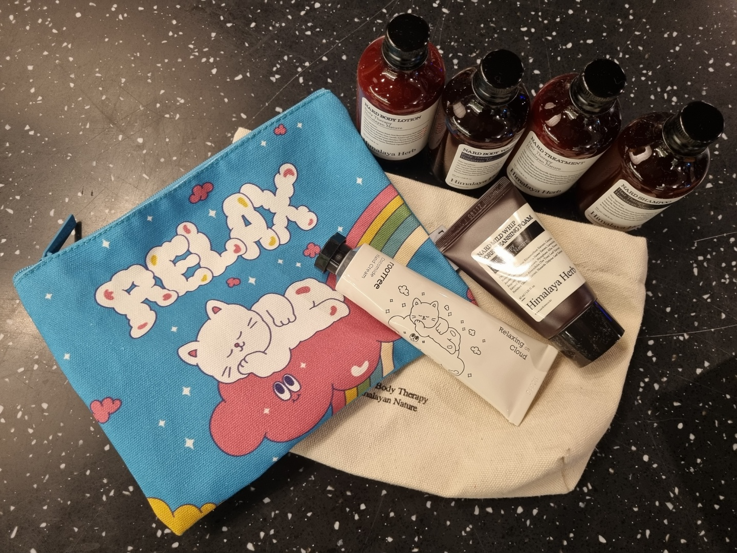 이번에는 배민 3만원 쿠폰과 여행파우치세트, 핸드크림을 받았다..