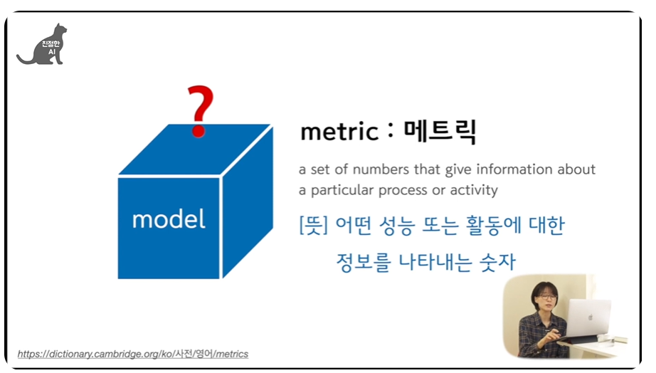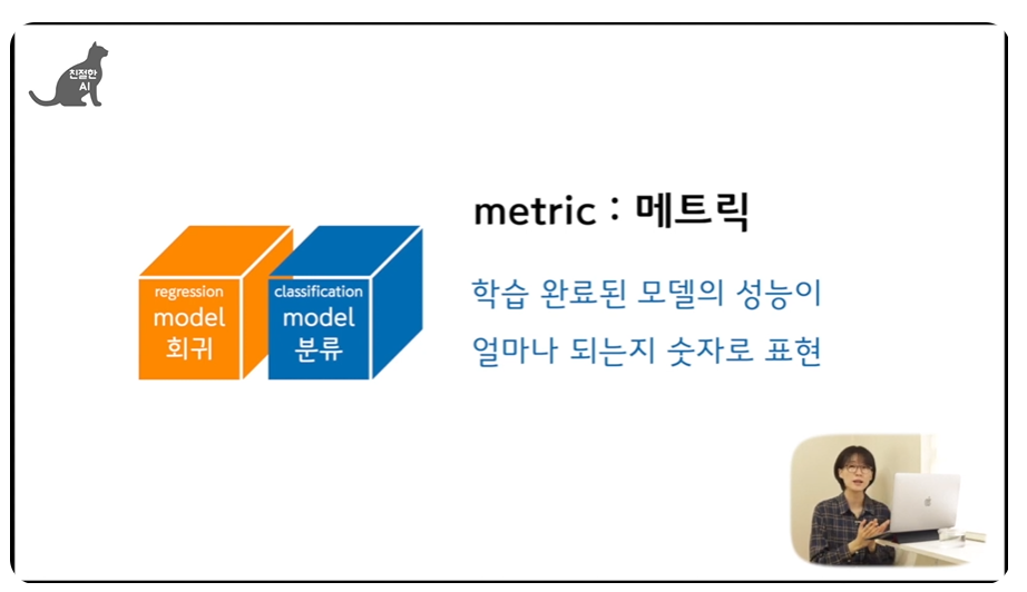 metric : 학습 완려된 모델의 성능이 얼마나 되는지 숫자로 표현