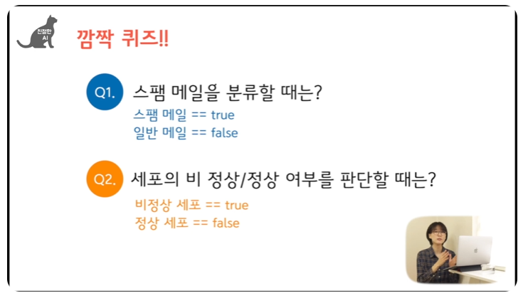따라서 스팸메일과 비정상 세포를 True 라고 설정해 놓는다.