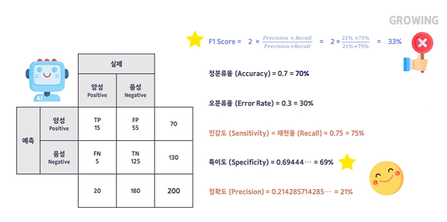표 밖의 지표, 예측과 실제가 어디에 있는지,Positive 와 Negative 자리부터 잘 확인해야한다.