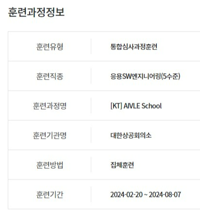 └ (조건)출석 80% 이상 (원래는 상공회의소의 출석부와 연동되지만, 업데이트 시간차가 꽤 있고, 개인마다 단위기간이 다르기 때문에, KT 출석부 엑셀 뽑아서 -> 상공회의소에 메일로 도장 PDF 파일받고 -> 해당 PDF 파일 국취제 사이트에 올려놓으면 출석인증이 된다.
