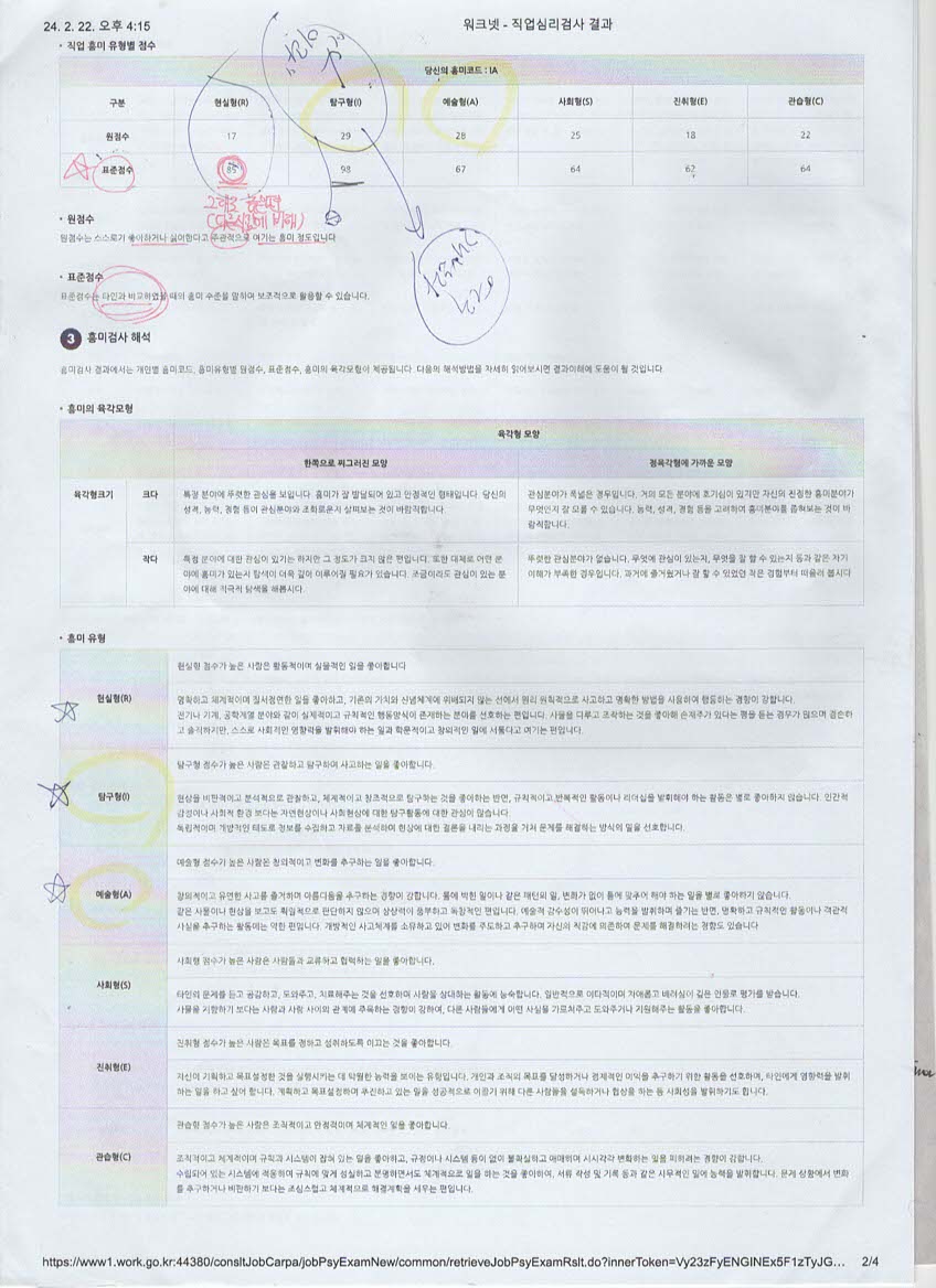 c.f. My 직업심리검사(Short 형 진단, 검사일 : 2024.02.21 )