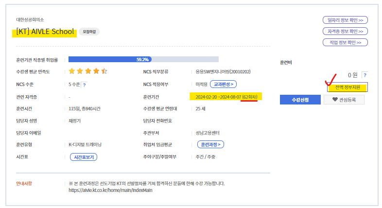 └ 전액정부지원 (내일배움카드 _ 약 1530만원)